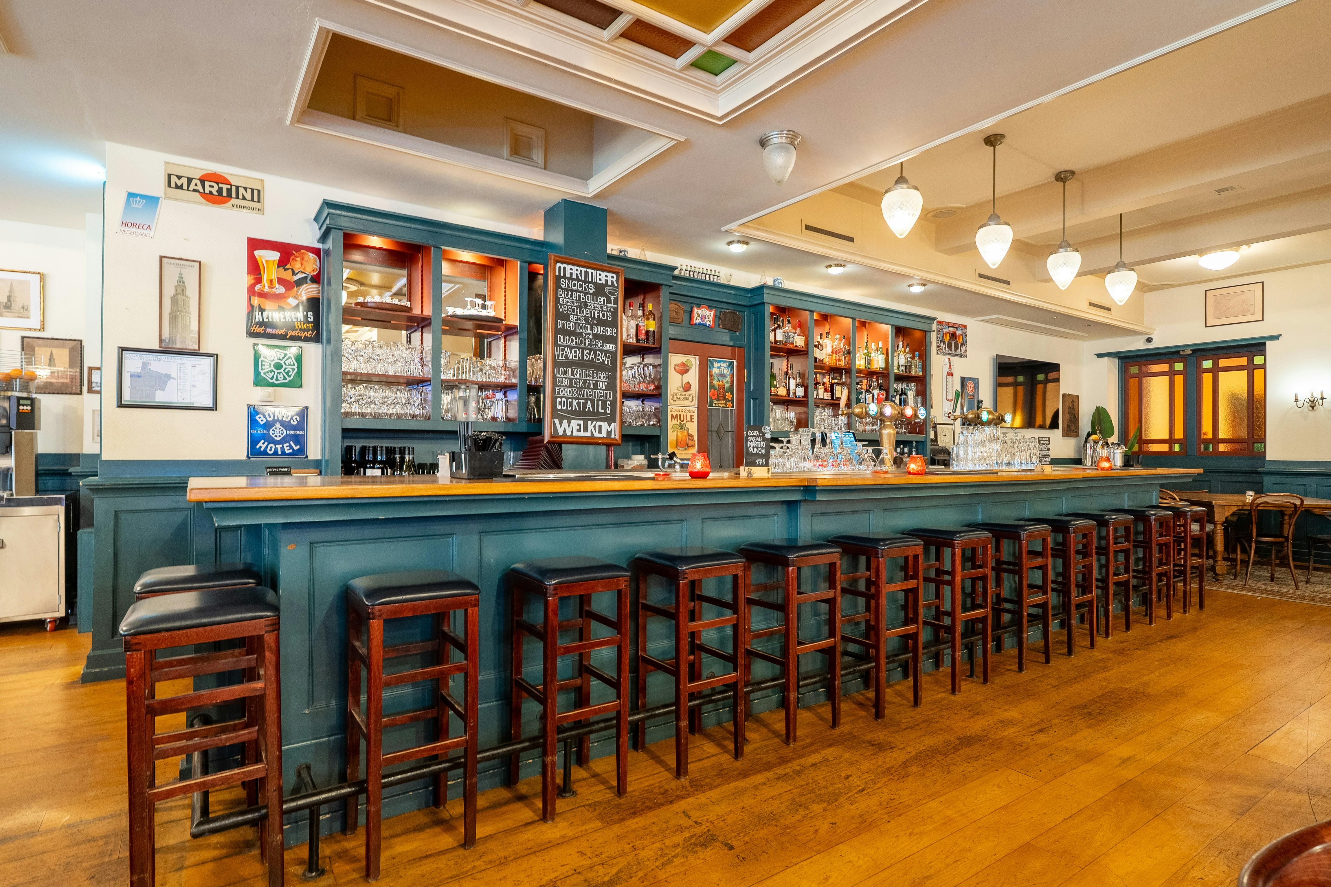 Ons Grand Café en de Martini Bar bieden een ontspannen setting voor koffiepauzes, informele gesprekken of een drankje na een productieve dag. De Martini Bar, met haar authentieke interieur uit de jaren dertig, is perfect om te netwerken of samen tot rust te komen.